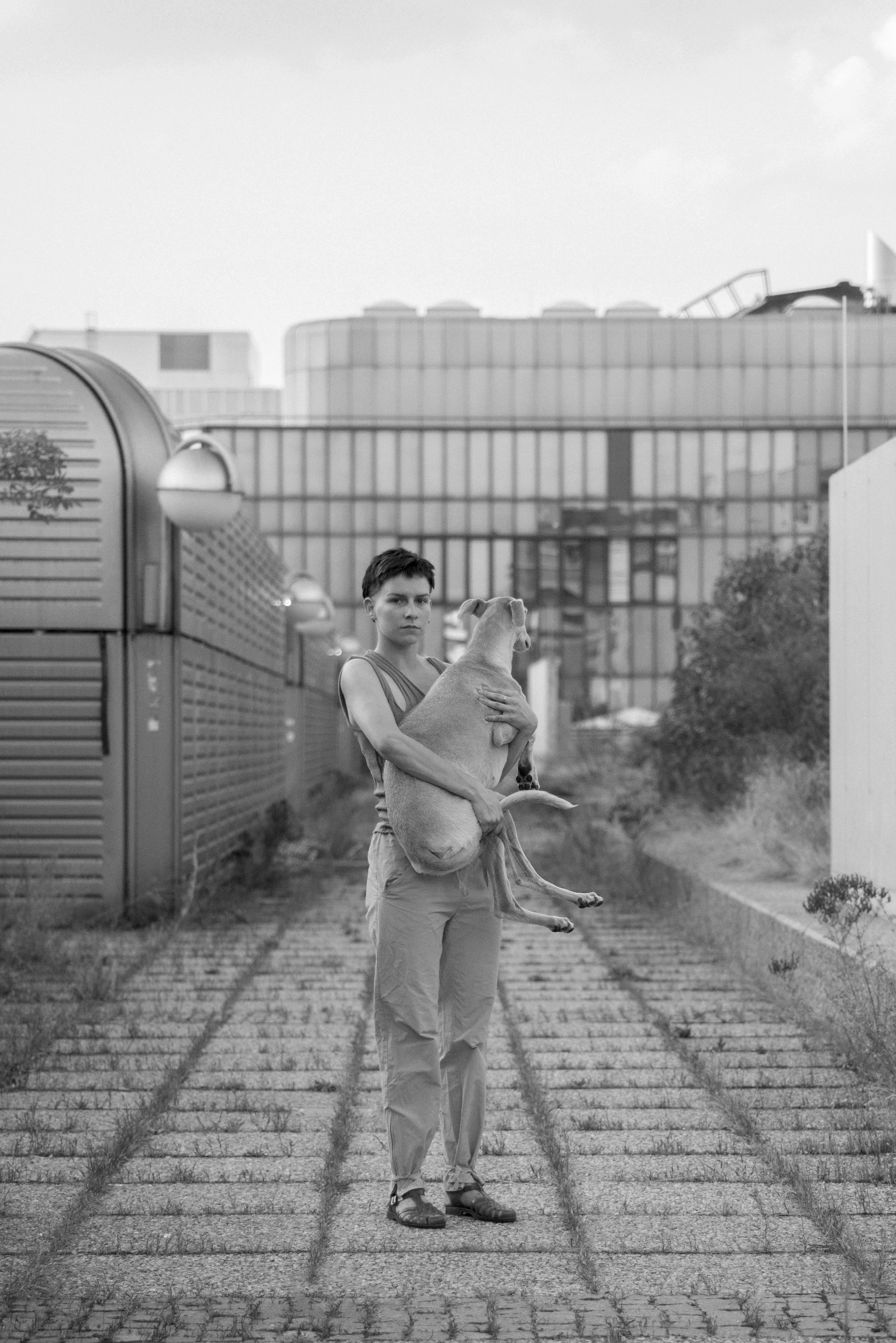 Walking back towards the metro station, along the straight long street next to the megastructure, somebody calls from behind. The person also makes clicks with the tongue, they sound like the one I make, too, and the dog turns around. Hey, so pretty, he says and it is unclear if it’s addressed to me or the dog. I stop underneath the next street light, and do not respond. I am already part of another kind of conversation, one between the dog and me and the city. He passes us, and we wait in the light until he is out of view. The dog pees at the light pole, and we continue our way.